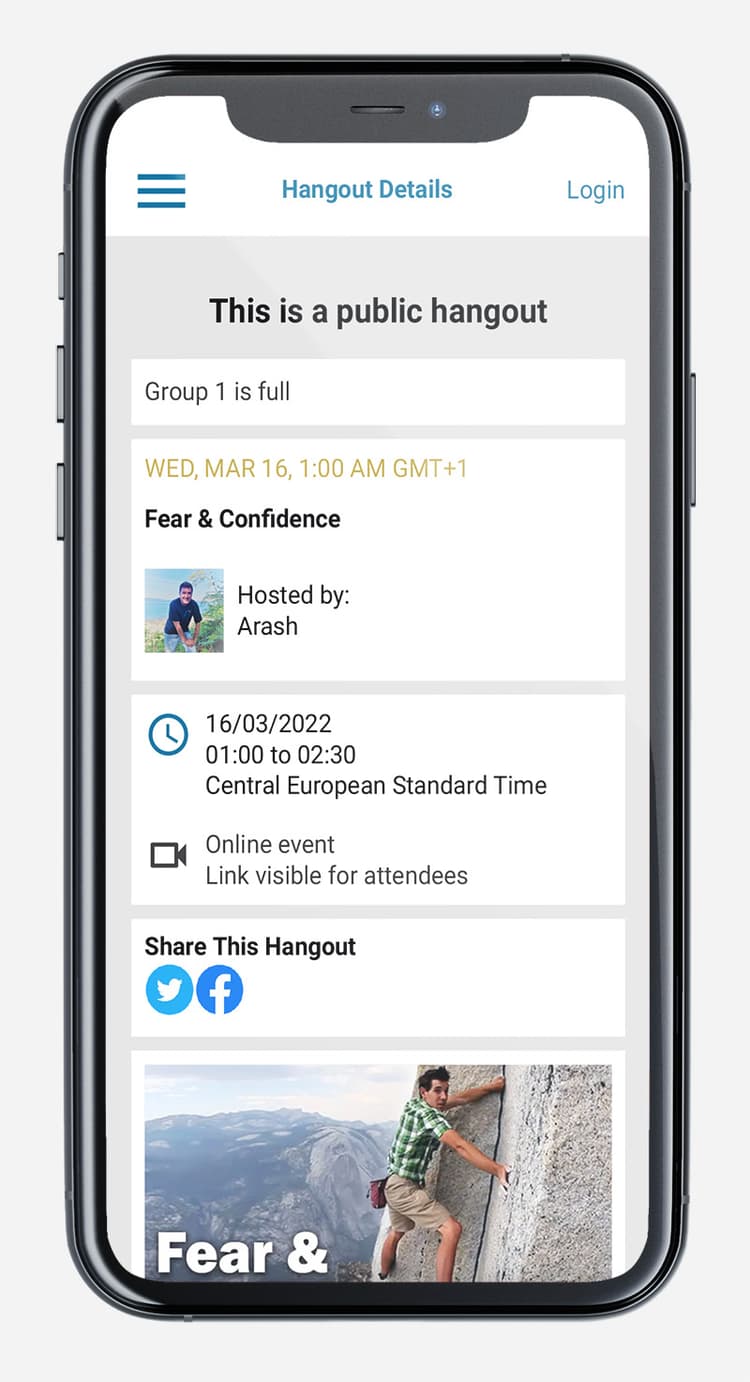 Members show their faces in their profile picture. No creeps. Join your first live hangout for free.